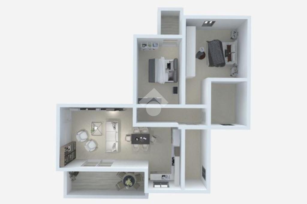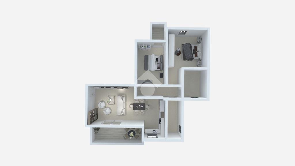 L'appartamento di circa 105 mq è così composto: soggiorno ampio e luminoso con angolo cottura ed uscita sul balcone abitabile, camera matrimoniale, cameretta con balcone privato, un bagno finestrato con doccia ed un secondo bagno finestrato con vasca.