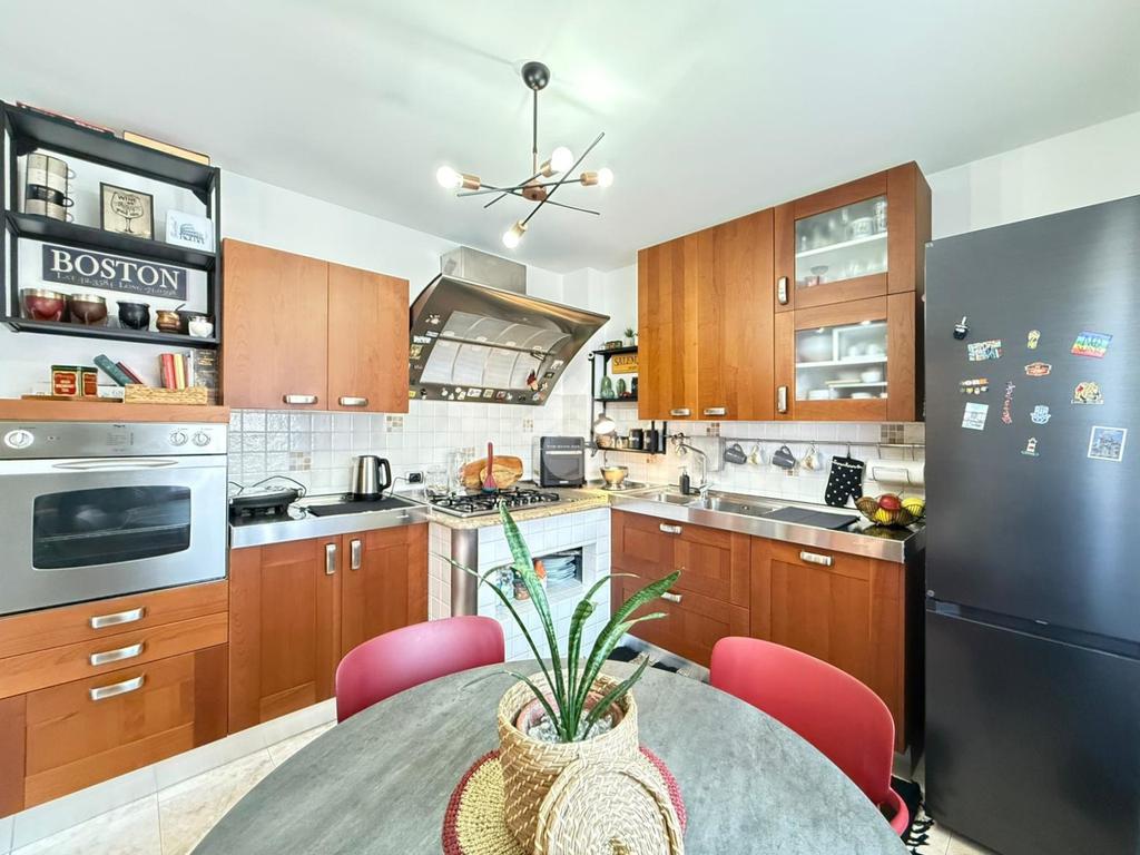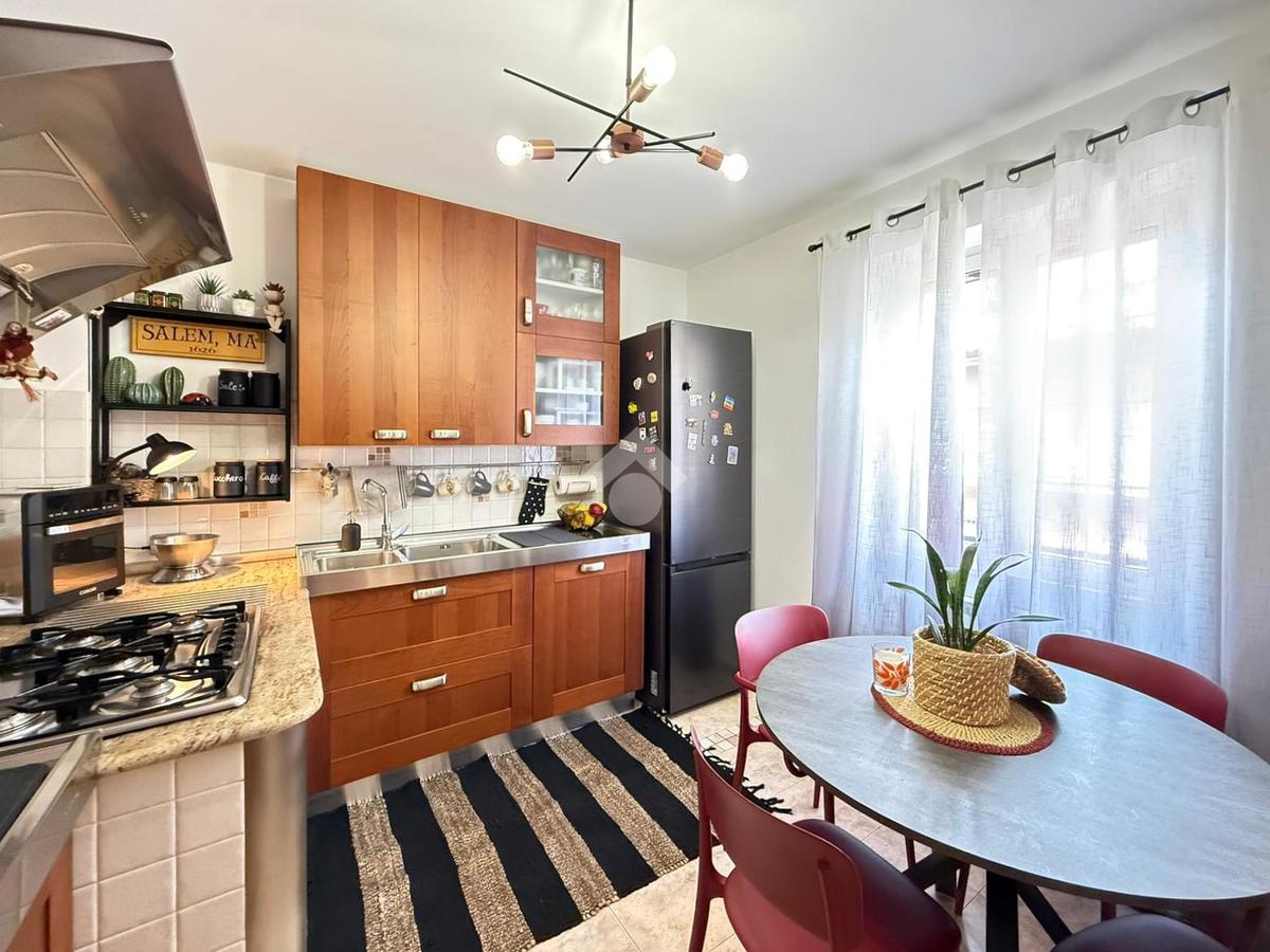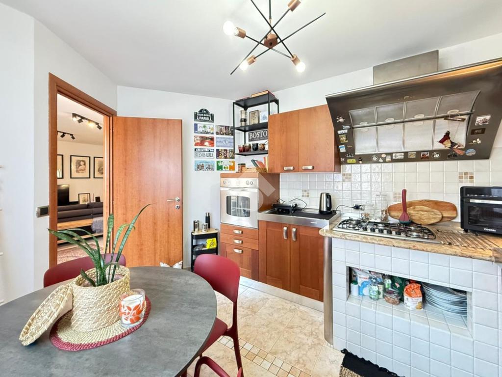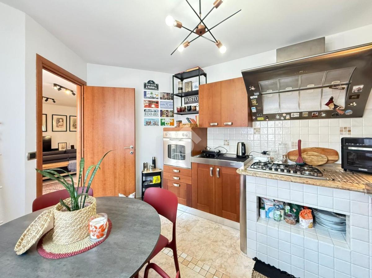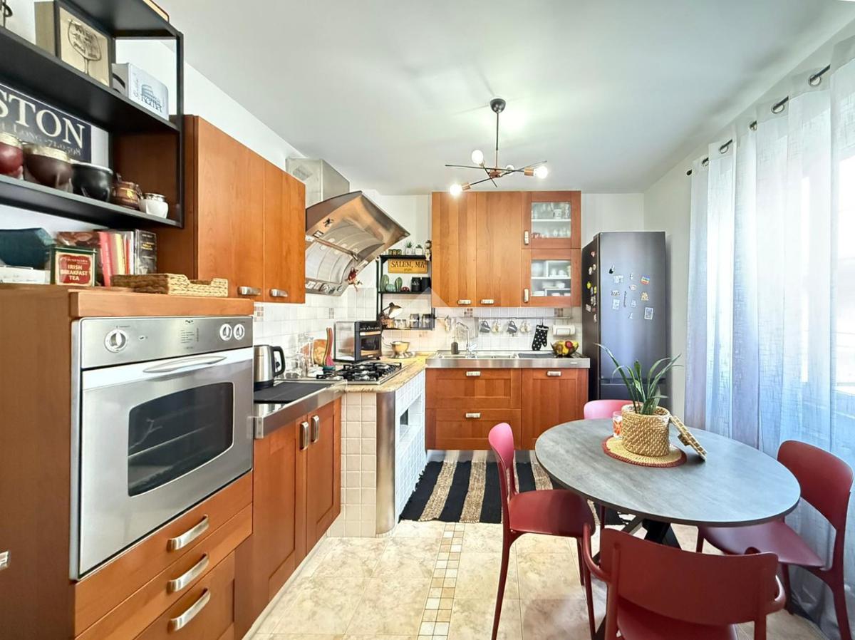 L’abitazione si apre su un ampio e luminoso soggiorno con accesso diretto al balcone, ideale per momenti di relax. La cucina separata e abitabile, anch’essa con uscita sul balcone, offre spazi funzionali e ben organizzati.