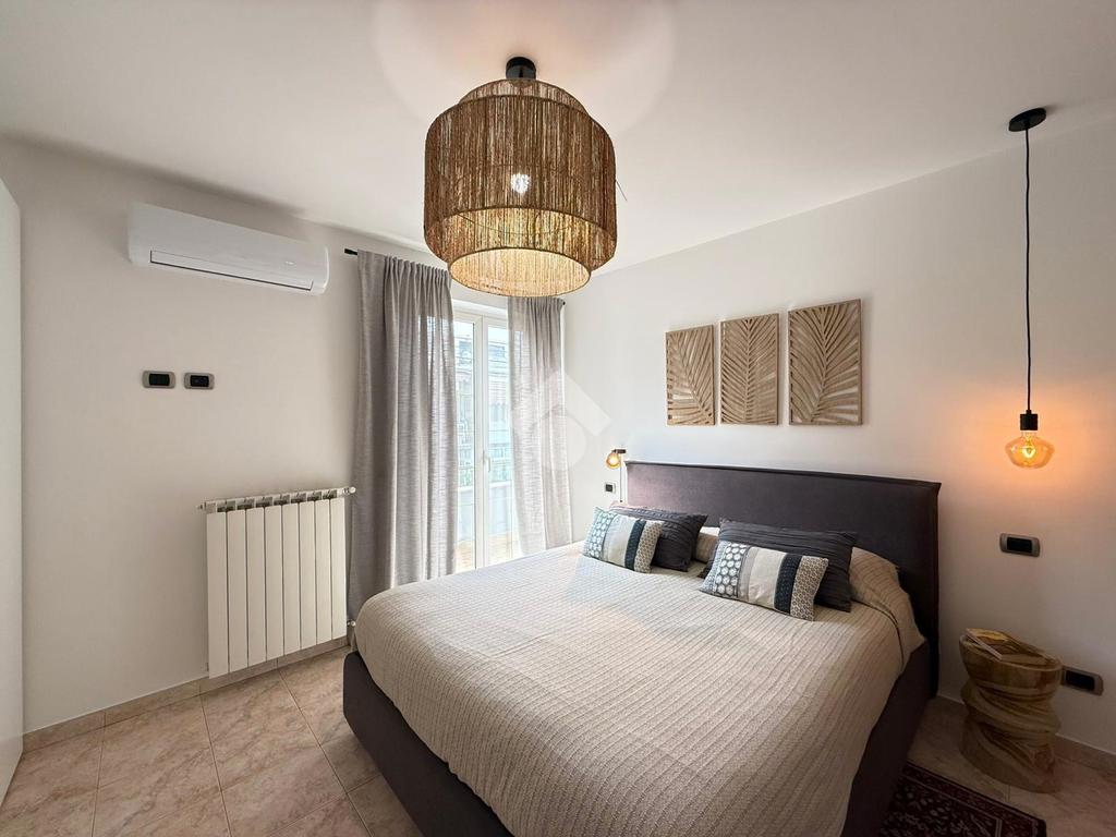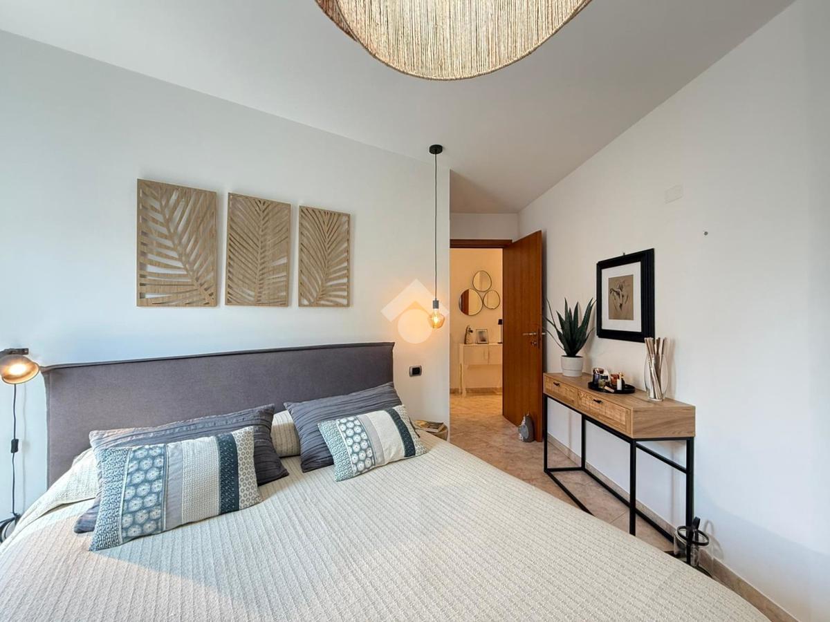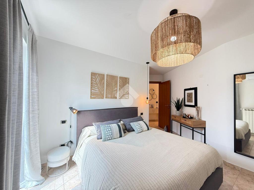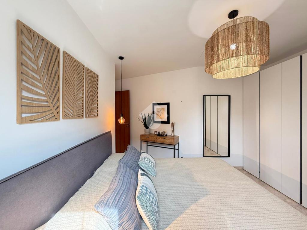 Tramite il corridoio, giungiamo alla zona notte dove troviamo la luminosa camera matrimoniale dotata di armadiatura su misura e di un balcone privato, oltre a un bagno en suite che garantisce massima privacy.