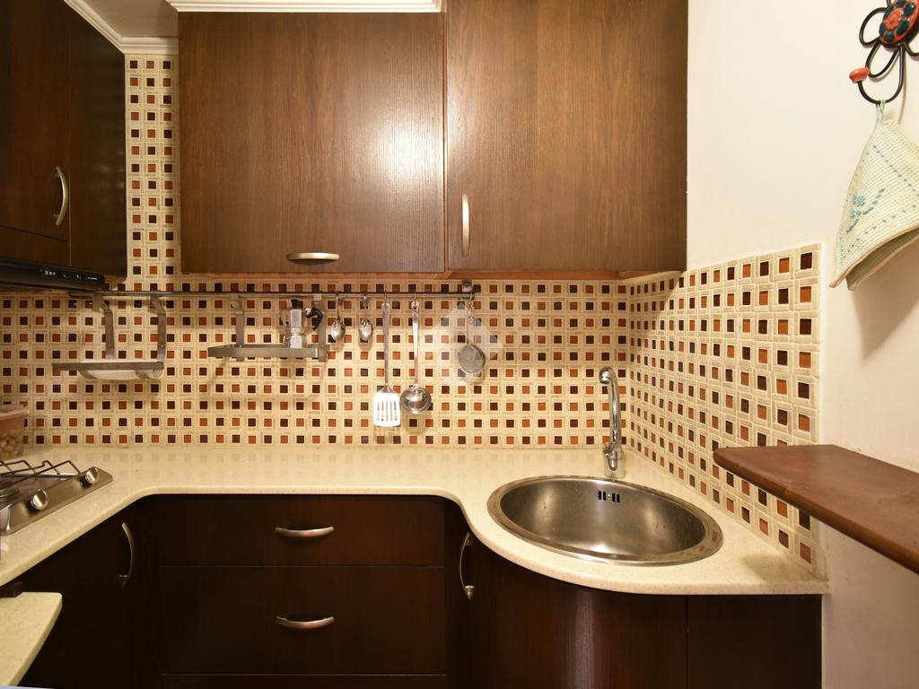L'appartamento presenta presenta intercapedine perimetrale, un piccolo ingresso rialzato e, scendendo le scale, ci accoglie il comodo soggiorno impreziosito da pareti con pietra viva; successivamente troviamo il cucinotto ed un ripostiglio.