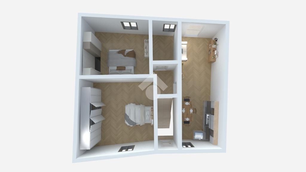 Il portone d'ingresso, a piano strada, ci introduce ad una scalinata tramite la quale arriviamo all'appartamento. Entrando, ci accoglie subito la luce proveniente dalla finestra del soggiorno, completamente esposto a Sud e dotato di angolo cottura abitabile. Proseguendo nel resto della casa, accediamo agli altri due ambienti: una luminosa cameretta, oggi adibita a zona living ed una camera matrimoniale, anch'essa esposta a Sud.